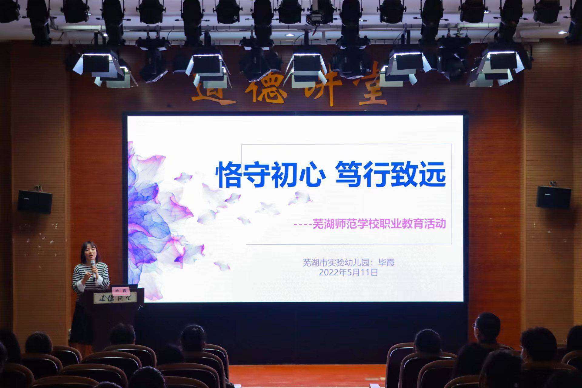 5月11日下午,安徽省特级教师、安徽省“最美教师”、 芜湖市实验幼儿园副园长毕霞作为杰出校友回到母校给学前教育专业的学弟学妹们作了一场精彩的分享会。她以坚守、契机、专业、优势四个关键词介绍了自己30多年的幼教生涯,通过幼儿园里一个个真实的小故事,勉励她们心无旁骛,苦练基本功,恪守幼教人的初心,用真心和真爱支持和引领每一个孩子从原有水平向更高水平发展。