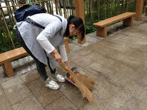 此次活动为校学生会属下青年志愿者社团日常开展的常规活动,立足于校园、以小组为单位分为7个保洁小分队,分别对学校操场、读书长廊、车棚、绿化带及学校有关处室办公地等公共场所,进行卫生死角彻底清扫、白色垃圾清除活动。经过志愿者们近一个小时的辛勤劳动,校园面貌焕然一新。