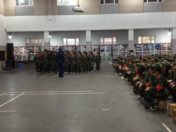 庄严的大礼堂里,我校学生列队整齐,在军训各排教官的带领下,踏着整齐的番号进行会操,向全体教师指导员和军训教官展示五天以来军训的成果。