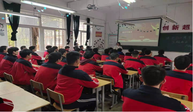 2021年3月29日,19级(1)班的师生开展了“建党一百周年”主题班会,重温党的光辉历史,班会开始由沈老师介绍活动引入主题,之后由同学们上台演讲党的先进事迹,例如“嘉兴红船”、“八女投江”、“七根火柴”,老师对本次主题班会进行了总结:“没有共产党,就没有新中国。”