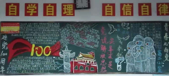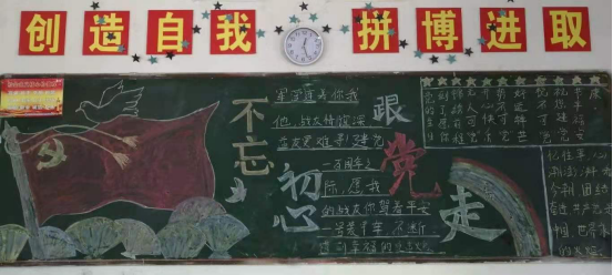 黑板报是一项传统的文化形式,一直是各班级重要的思想文化宣传阵地,也是各班级学习工作的交流平台,在建党百年这个伟大的时刻到来之际,各班级积极围绕党史学习教育与庆祝建党100周年主题,齐心协力,对黑板报进行精心设计,内容丰富,图文并茂,汇集了班级的集体智慧,也体现了对中国共产党的崇高敬意,真正让“红色基因”更好凸显,让“方寸之地”再现“无限风景”。(图文/谈胜男 审/胡小华)